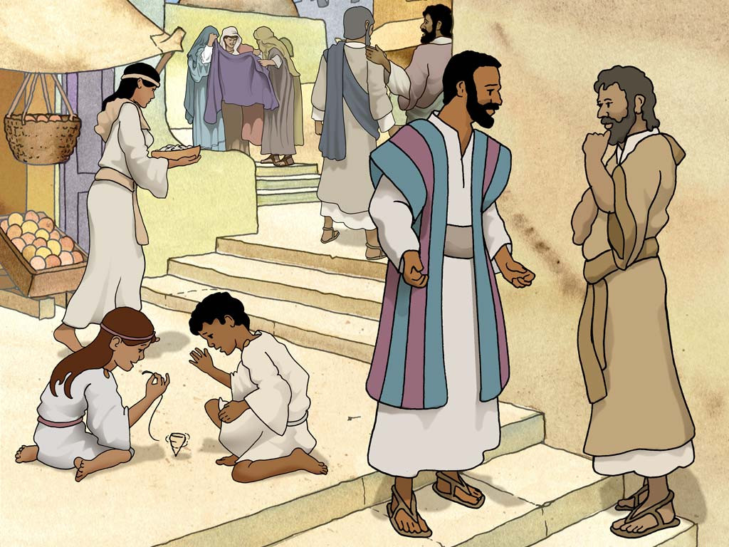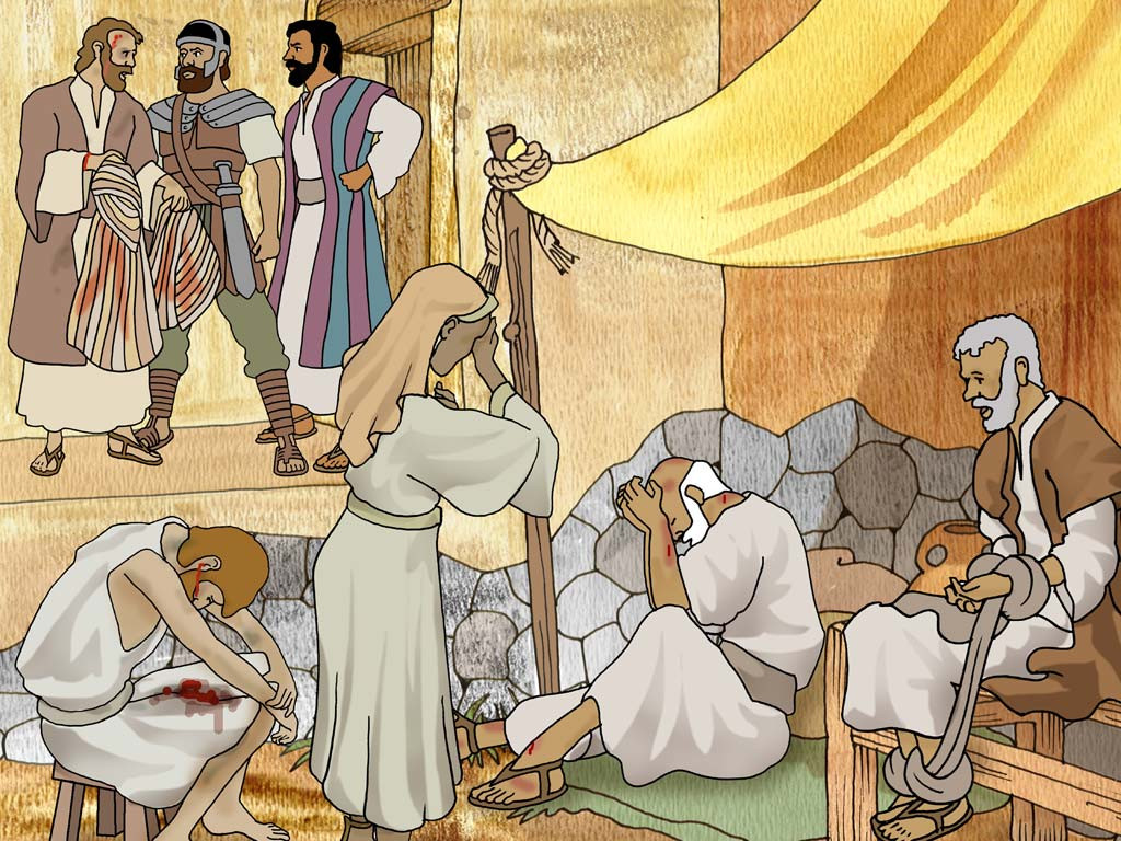 Saul gorąco poparł decyzję o skazaniu go na śmierć. Tego dnia rozpoczęły się wielkie prześladowania Kościoła w Jerozolimie i wszyscy, z wyjątkiem apostołów, rozproszyli się po regionach Judei i Samarii... Saul zaczął niszczyć Kościół, wchodząc do domów i wywlekając mężczyzn i kobiety, a następnie wtrącając ich do więzienia. (Dzieje Apostolskie 8:1,3) – Slajd 7