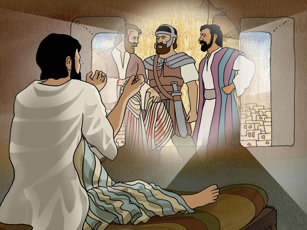 Saul podniósł się z ziemi, ale mimo że miał otwarte oczy, nic nie widział. Prowadząc go za rękę, zaprowadzili go do Damaszku. Przez trzy dni nie widział, nie jadł i nie pił. (Dzieje Apostolskie 9:8–9) – Slajd 11